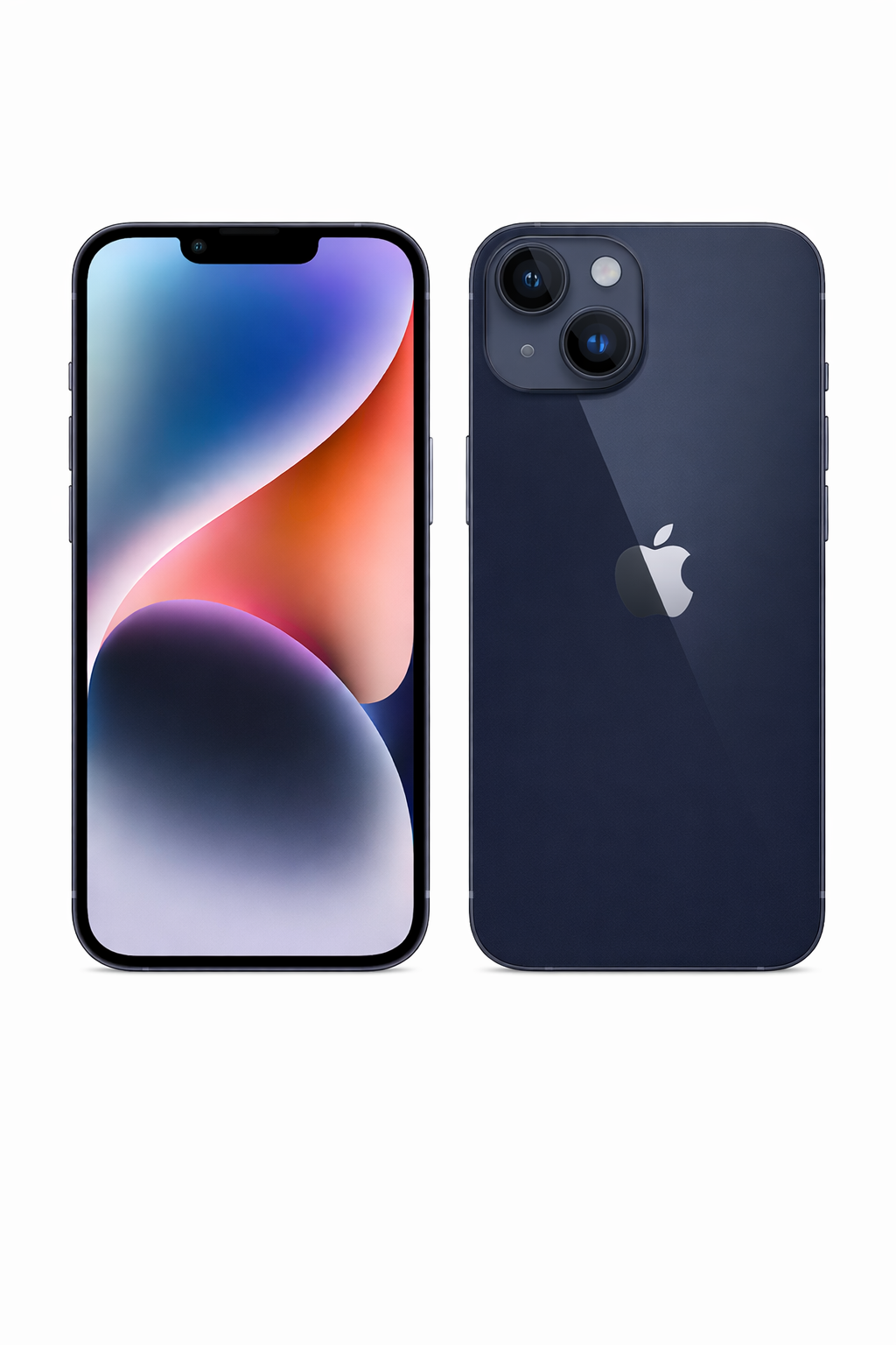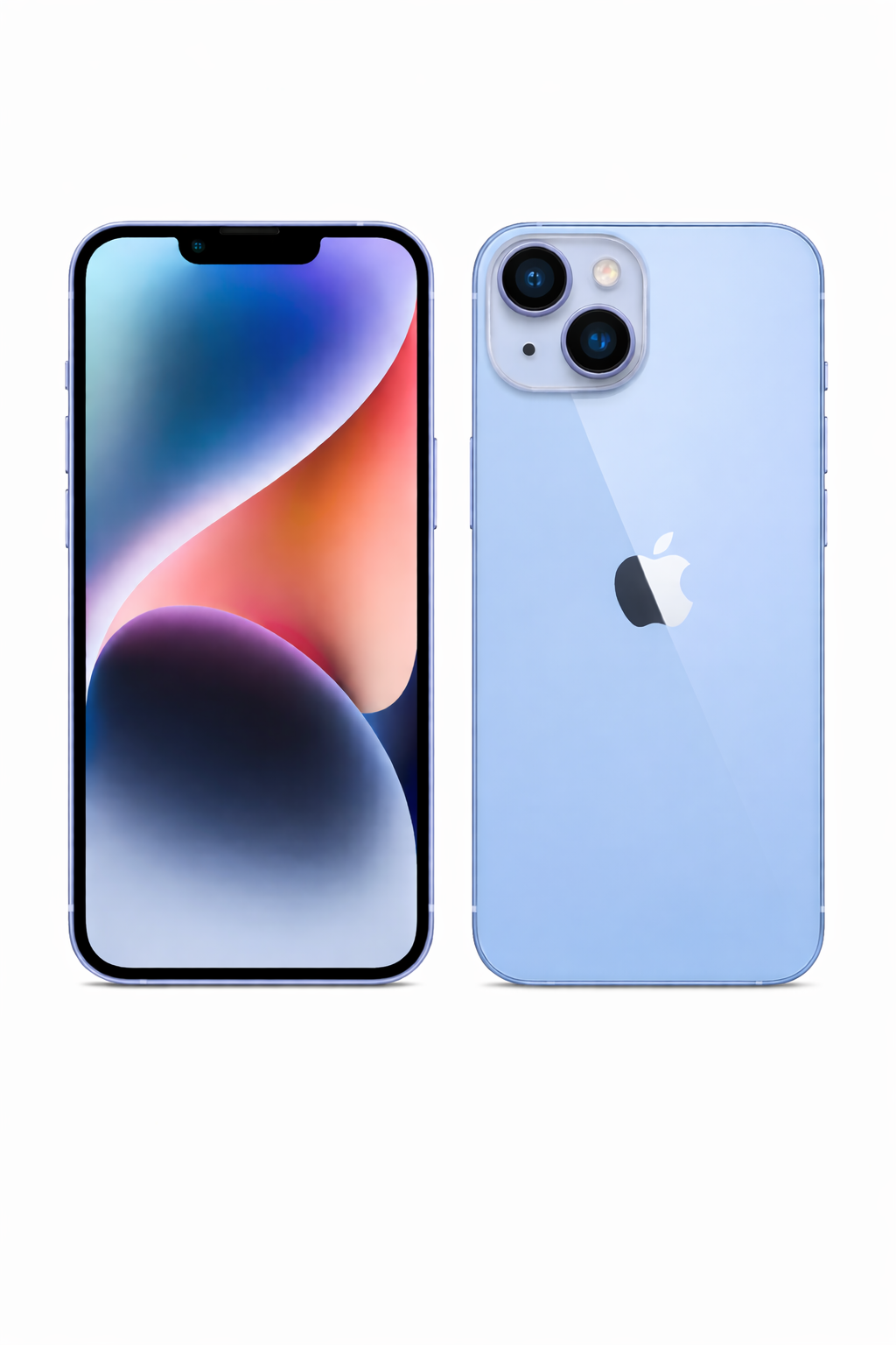 The iPhone 14 is a 6.1-inch smartphone designed by Apple, featuring a Super Retina XDR OLED display and powered by the A15 Bionic chip with a 5-core GPU for fast and efficient performance. It includes a dual-camera system with advanced computational photography, improved low-light performance through Photonic Engine, and 4K video recording capabilities. The device offers safety features such as Crash Detection and Emergency SOS via satellite. It supports 5G connectivity, MagSafe wireless charging, and has an IP68 rating for water and dust resistance. The iPhone 14 runs on iOS and delivers a balance of performance, durability, and advanced camera technology.