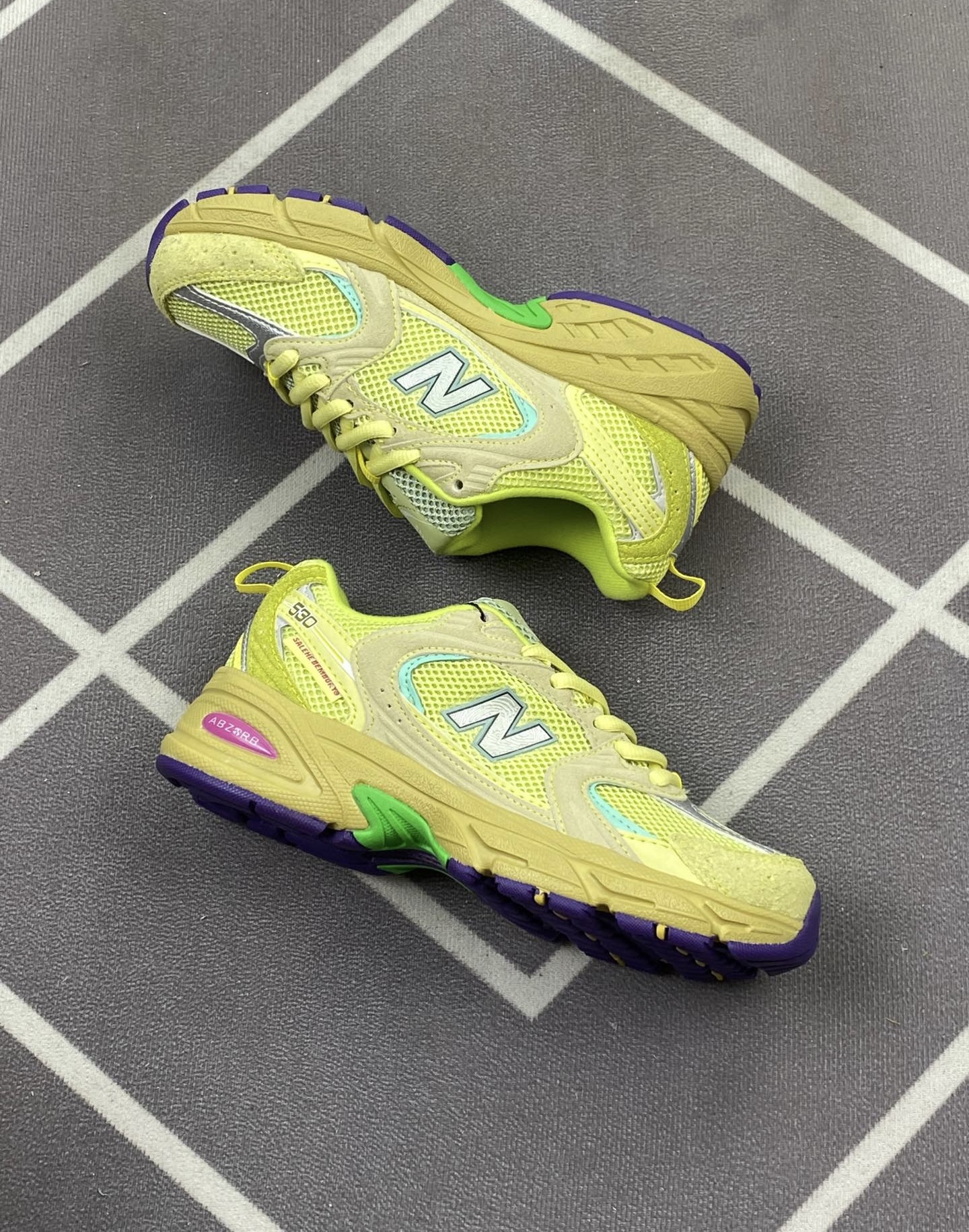 These New Balance 530 shoes feature a bold retro running design combined with modern streetwear style. Crafted with breathable mesh uppers and layered suede and synthetic overlays, the sneakers provide lightweight ventilation and durable support for everyday wear. The cushioned midsole with ABZORB technology helps absorb impact and improve stability, while the rugged rubber outsole offers excellent grip and traction on different surfaces. The signature New Balance “N” logo and dynamic panel design create a distinctive athletic look that stands out. Designed for both men and women, these shoes are ideal for casual wear, street fashion, and all-day comfort.