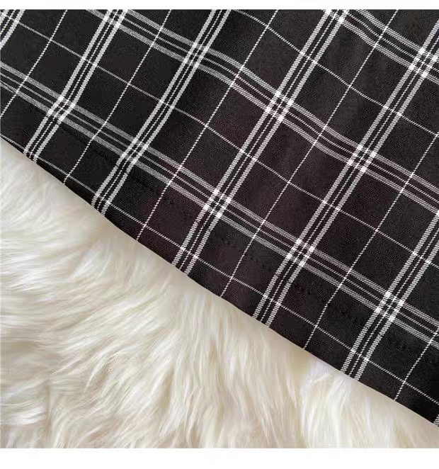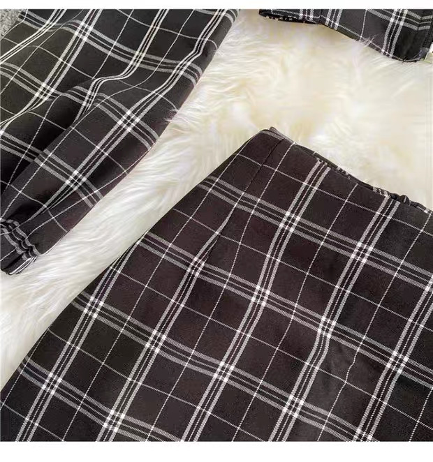 The black plaid version adds a trendy twist with its eye-catching check pattern, while maintaining the same flattering cropped top and mini skirt design. Perfect for casual outings, date nights, or fashion-forward street style, this black and black plaid set combines elegance with modern edge.