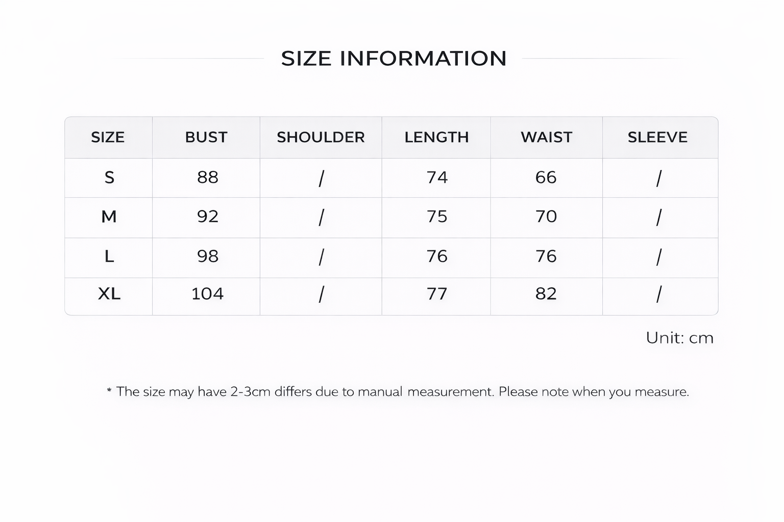 | size | S, M, L |