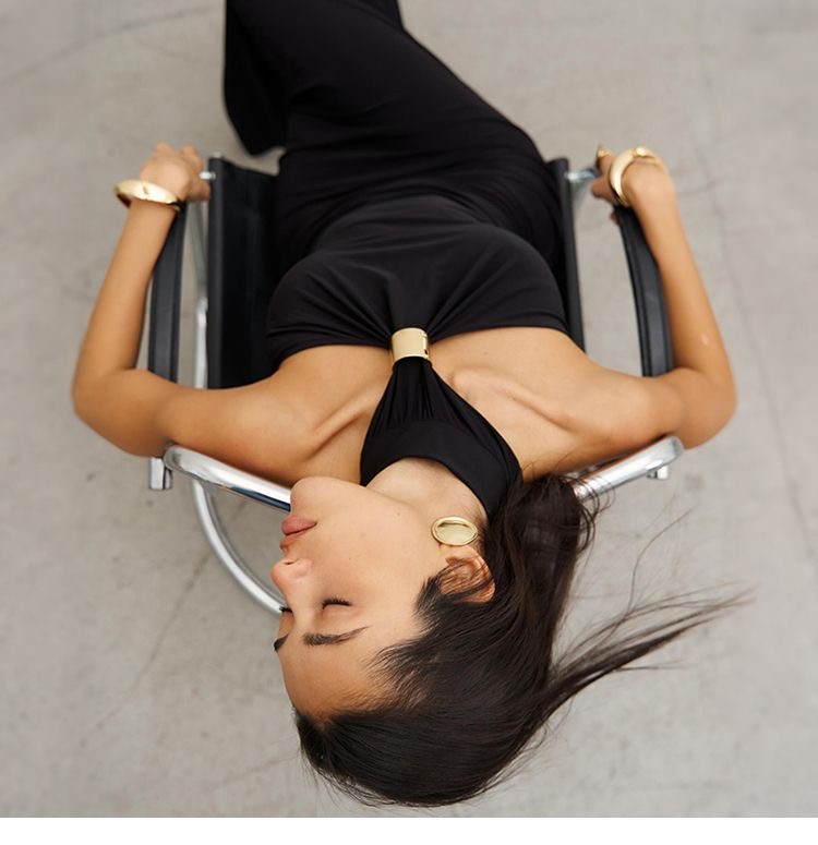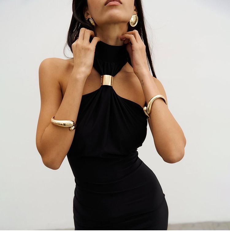 Womens Clothes Halter Neck Gold Ring Maxi Dress