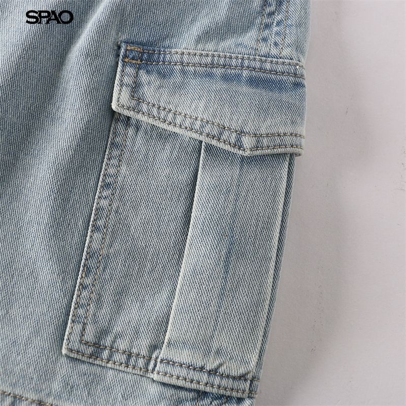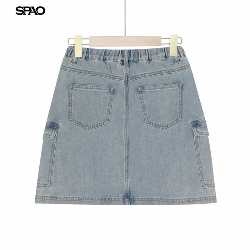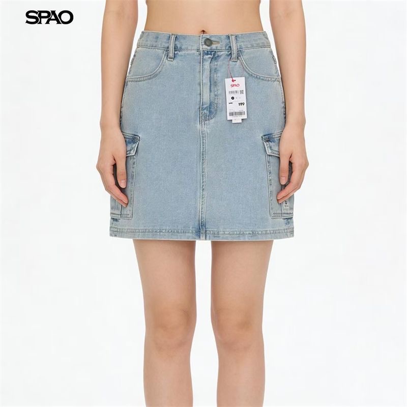 This Womens clothes denim mini skirt features a flattering high-waist fit with a structured A-line silhouette. Designed with functional cargo pockets on both sides, it blends casual street style with everyday practicality. Made from durable washed denim, it offers a comfortable yet stylish look that pairs easily with crop tops, tees, or sweaters for all-season wear.