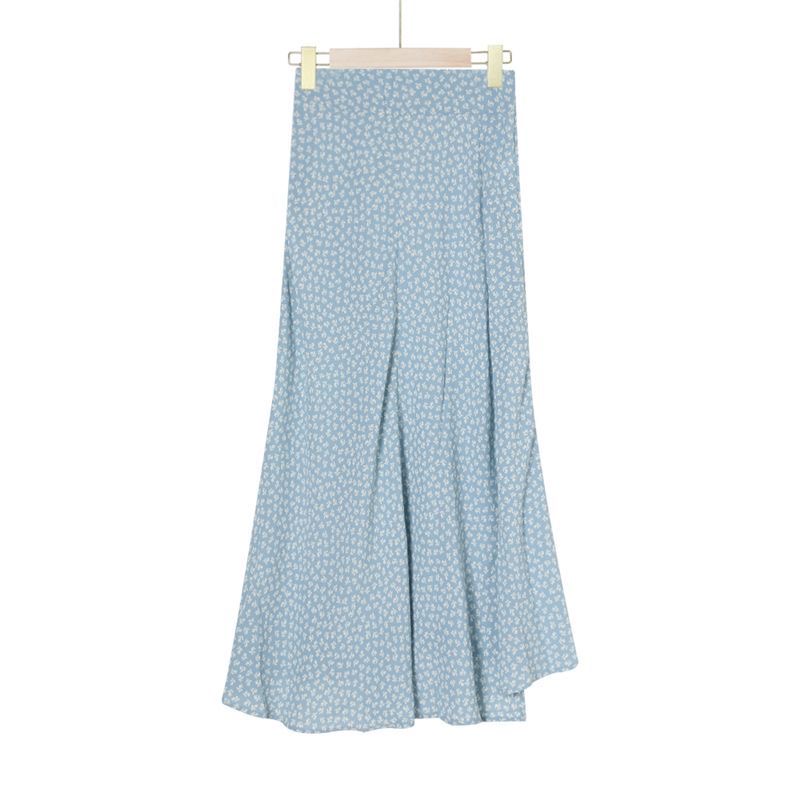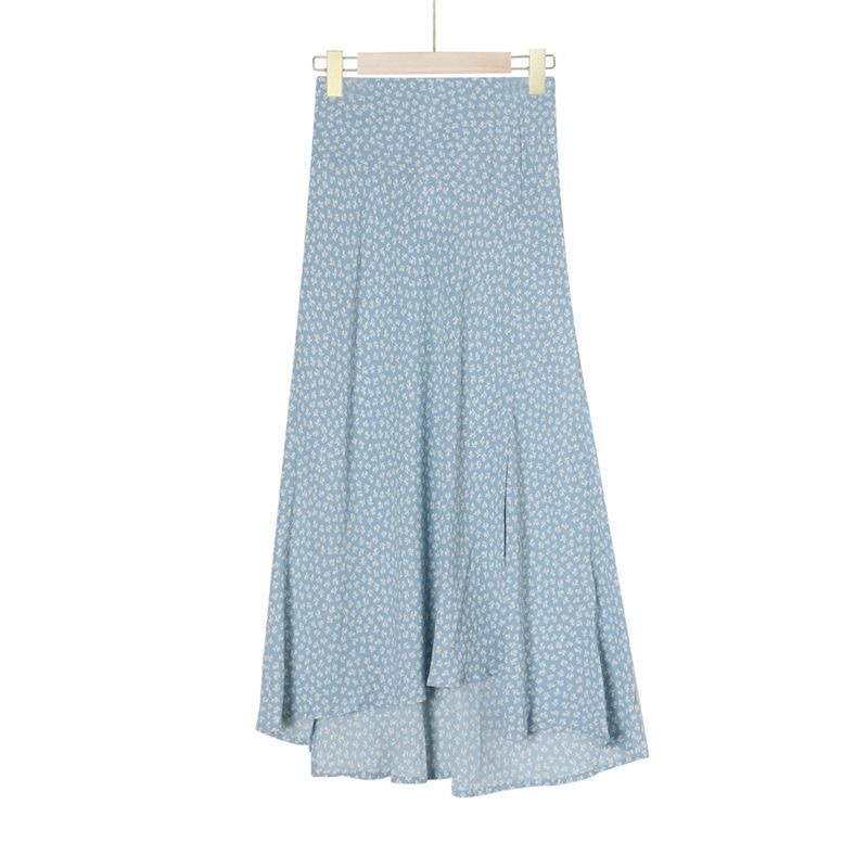 Womens floral print midi skirt clothes designed with a soft, lightweight fabric that drapes beautifully for everyday elegance. Features a high-waisted fit, delicate all-over floral pattern, and a subtle side slit for easy movement. Finished with a concealed back zipper and a flowy hem, this skirt is perfect for casual outings, vacations, or dressed-up looks with heels or sandals.
