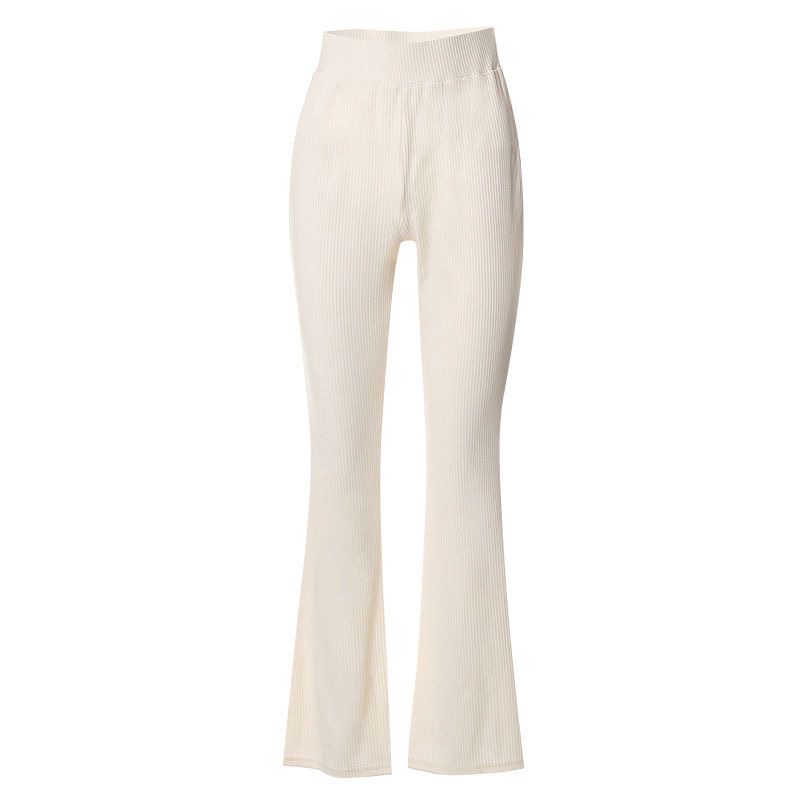 Women’s high-rise, body-hugging ribbed leggings with a slight flare/bootcut hem. Stretchy and comfortable for everyday wear, gym/yoga, or casual outfits. Available in black, brown, and beige, and pairs well with sneakers .
