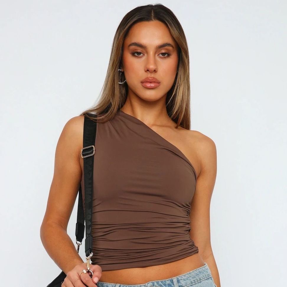 Womens stylish one shoulder crop top clothes featuring a sleek sleeveless design with flattering ruched detailing for a snatched fit. Made with soft stretchy fabric that feels smooth on the skin, perfect for pairing with jeans, skirts, or shorts for casual outings, parties, date nights, and streetwear looks.